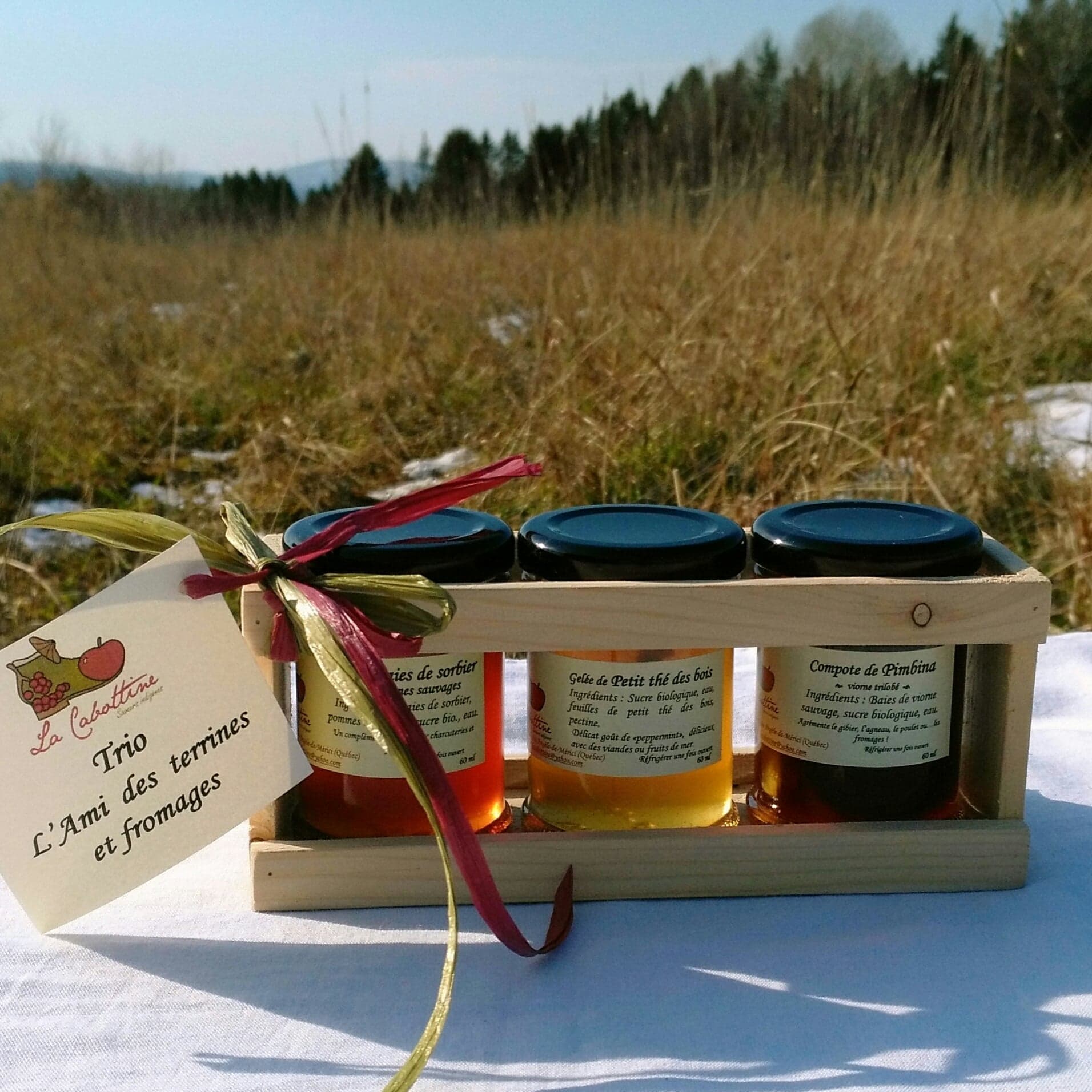 De quoi pimenter vos dégustations terrines et fromages avec des accompagnements originaux: trio (3x60ml) gelée de Petit Thé des bois, gelée de baies de Sorbier et compote de Pimbina. À découvrir absolument!