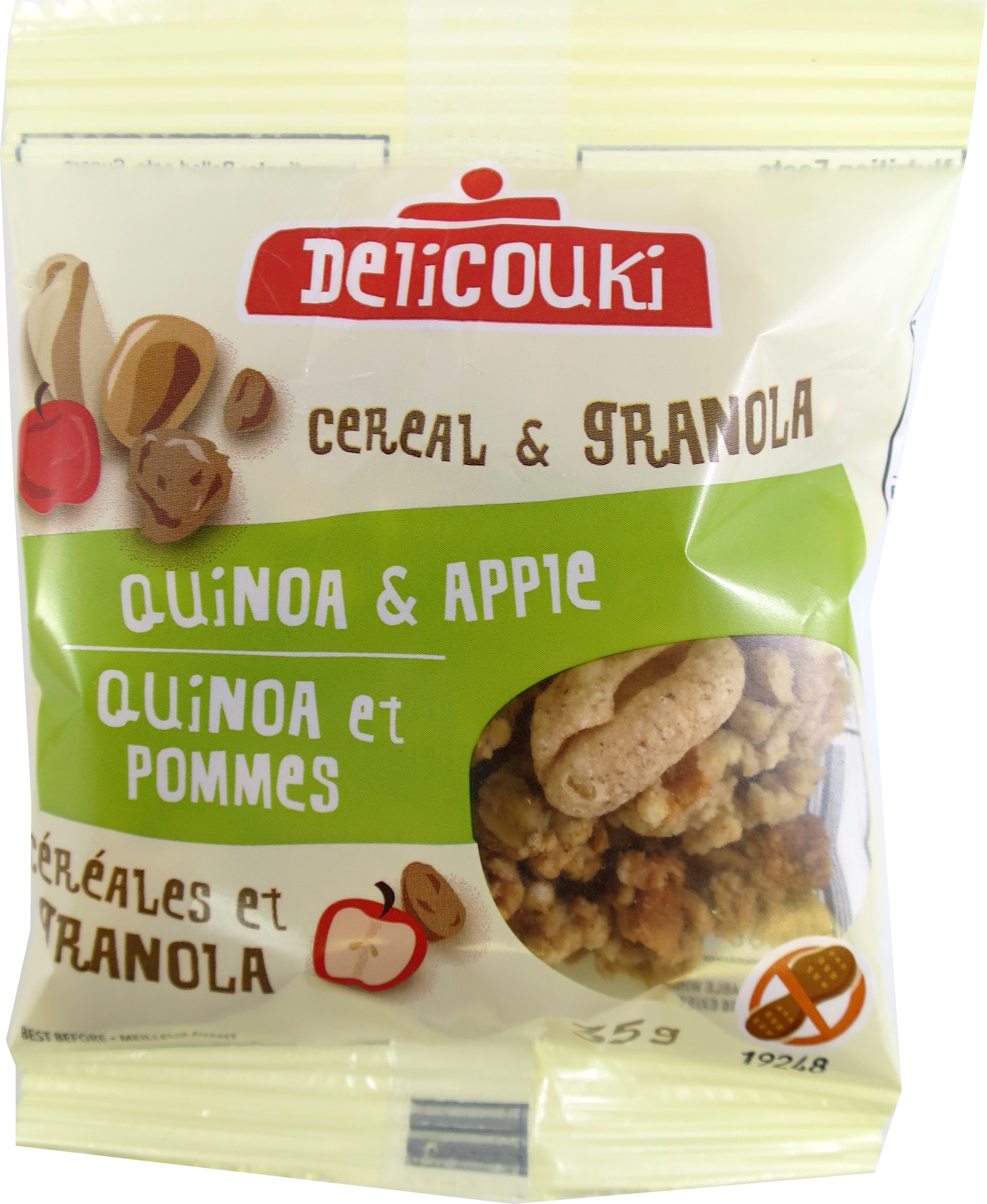 Boite de 12 sachet de céréales quinoa et granola aux pommesCollations céréales et granolaBonnes valeurs nutritionnellesGrains entiersPratiquessans agents de conservationsans arachides...