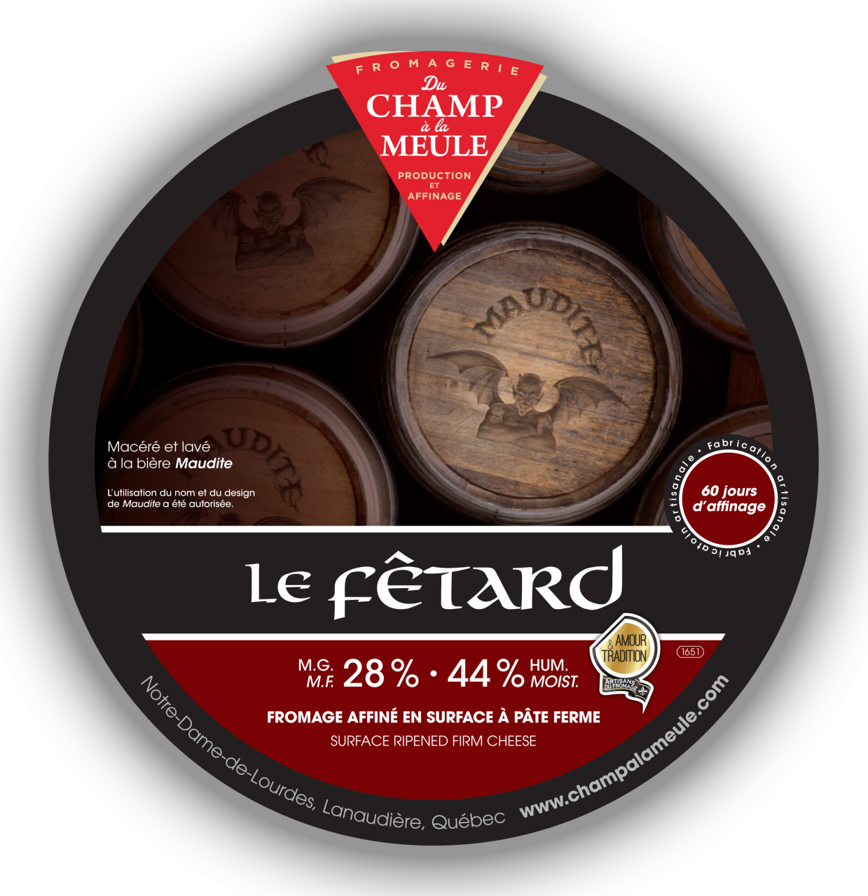 Pain au fromage GOURMAND Le Fêtard d'économie circulaire. Fait de blé, de drêche de bière de Belle Gueule, de fromages lavé à la bière Le Fêtard et de petit lait (Lactosérum) de la Fromagerie Du Champ à la Meule de Notre-Dame-de-Lourdes, Québec.