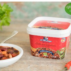 Chili doux, style végétarien, sans viande, sans cholestérol, cuit au four lentement et ne comprenant que des ingrédients de première qualité : haricots (rouges, blancs, pinto), tomates, poivrons, carottes, oignons...