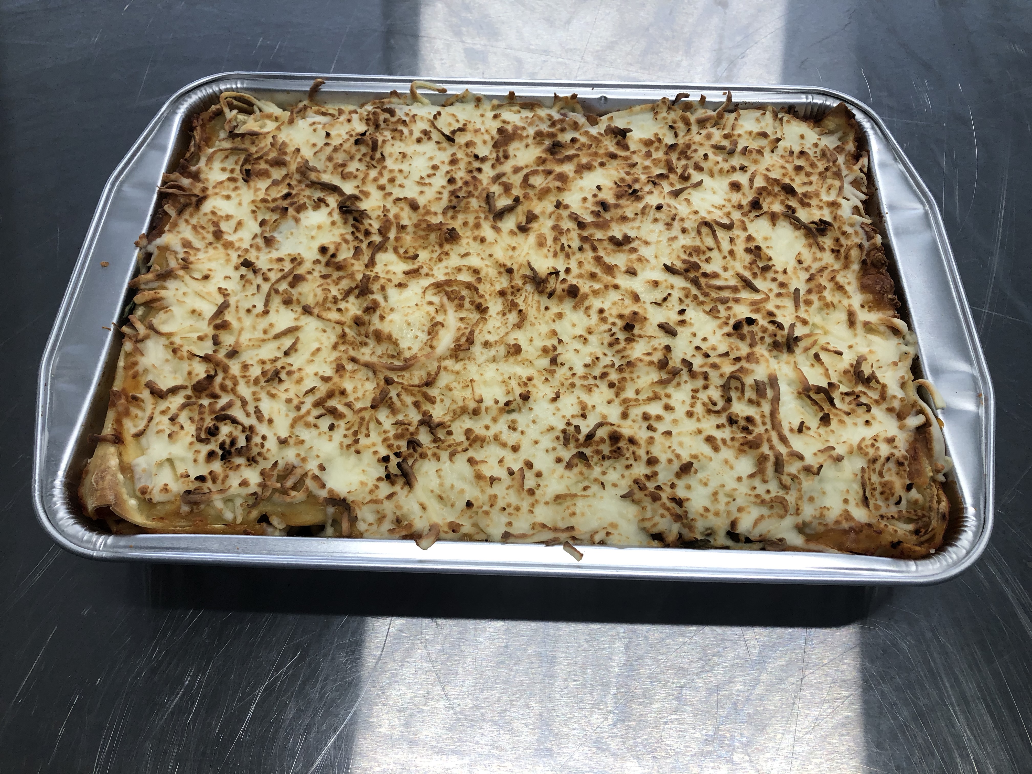 Une superbe lasagne surgelée faite a base de notre sauce bolognaise faite maison et de pâtes fraîches faites maison.