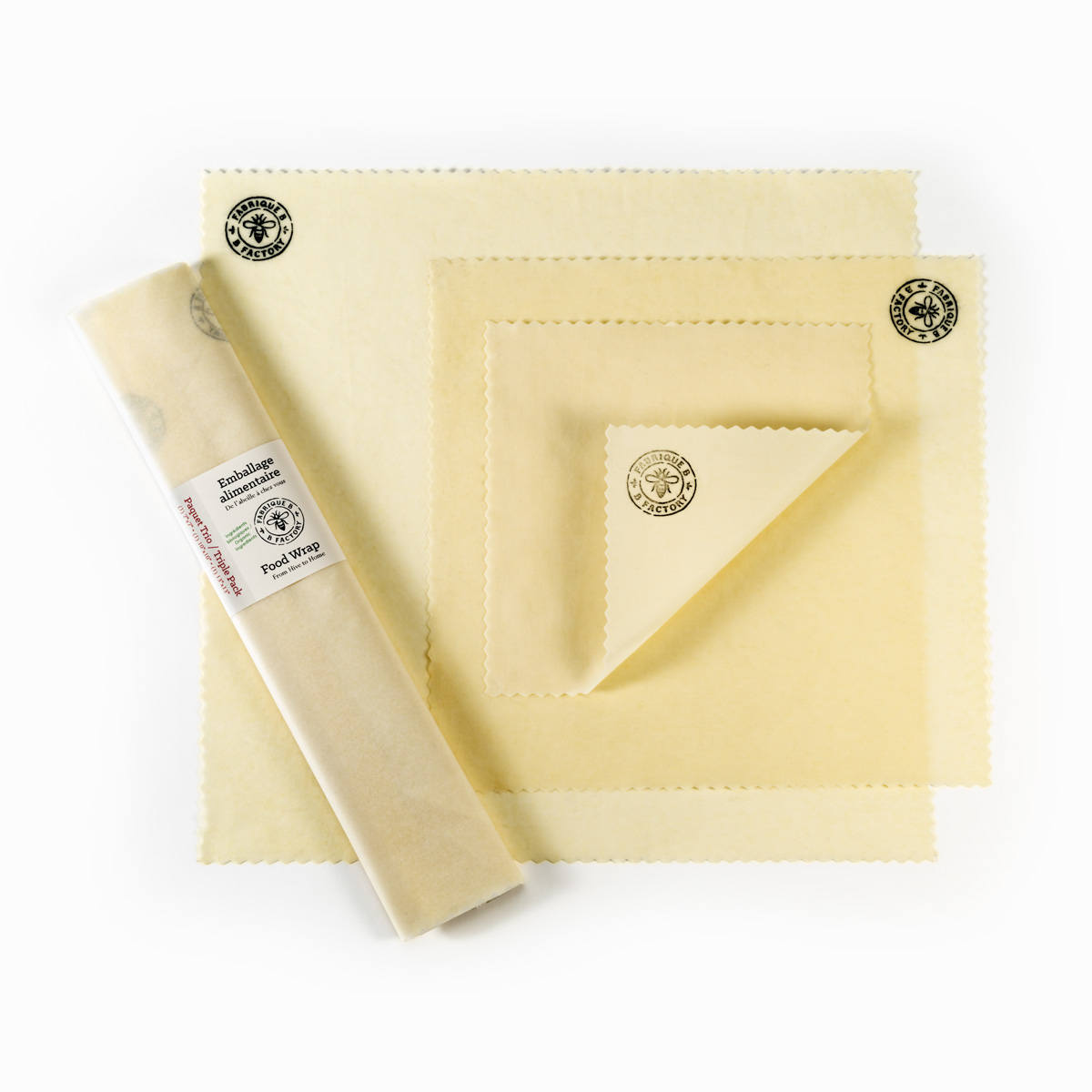 Lavable. Réutilisable. Antibactérienne. Cette pellicule de qualité remplacera votre pellicule plastique et permettra à vos aliments de rester frais plus longtemps. Le mélange de cire d’abeille, de résine d’arbre et d’huile de jojoba crée un produit durable et efficace avec lequel vous pourrez couvrir vos plats et emballer avocats, fromages, concombres, poivrons, melons...