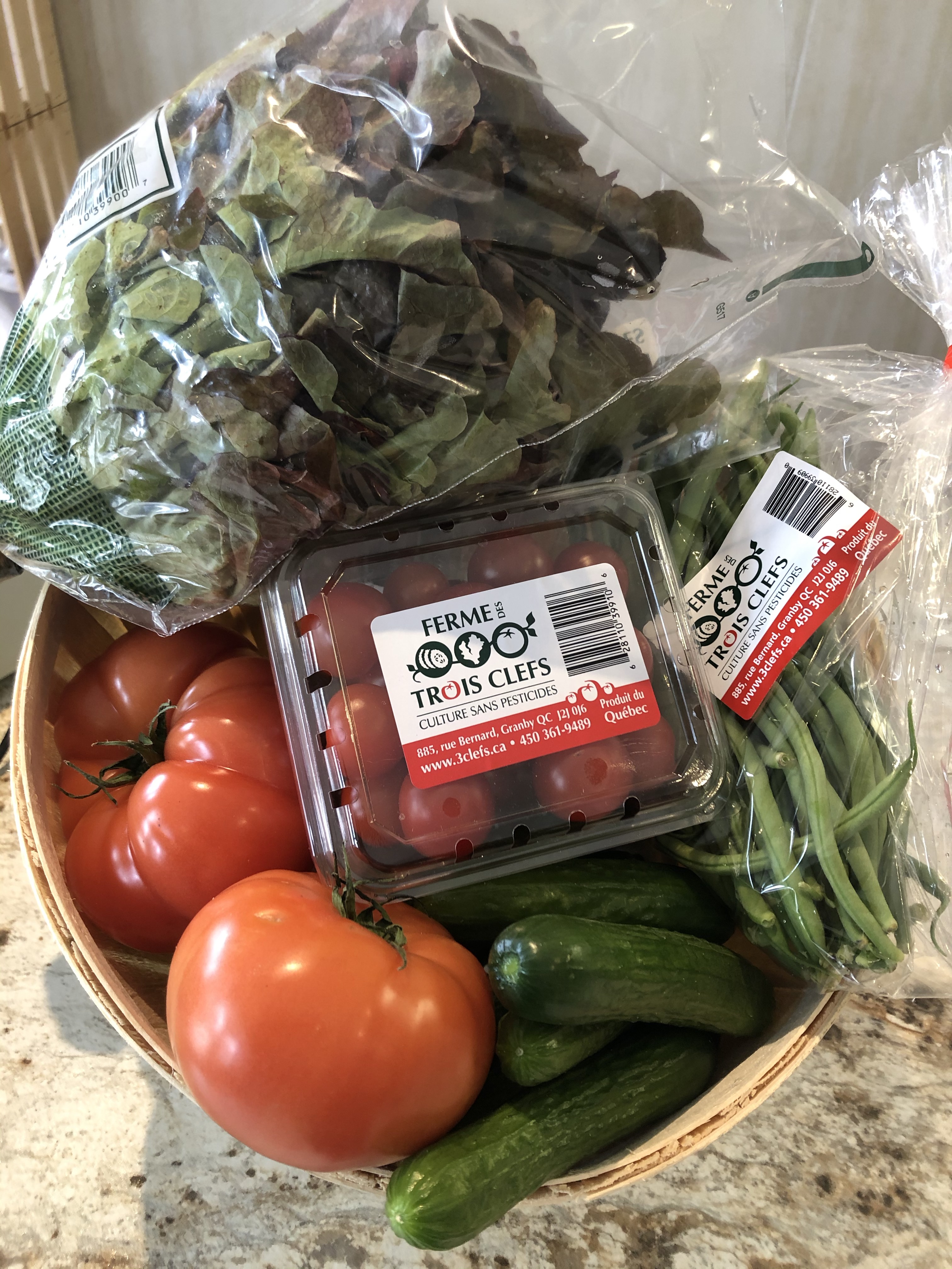 Petit Panier de légumes variés au choix du maraîcheur !1 livre de concombres libanais 1 unité de concombre anglais1 chopine de cerise rouge2 livres de tomate1 livre de tomate italienne2 laitue vivante1...