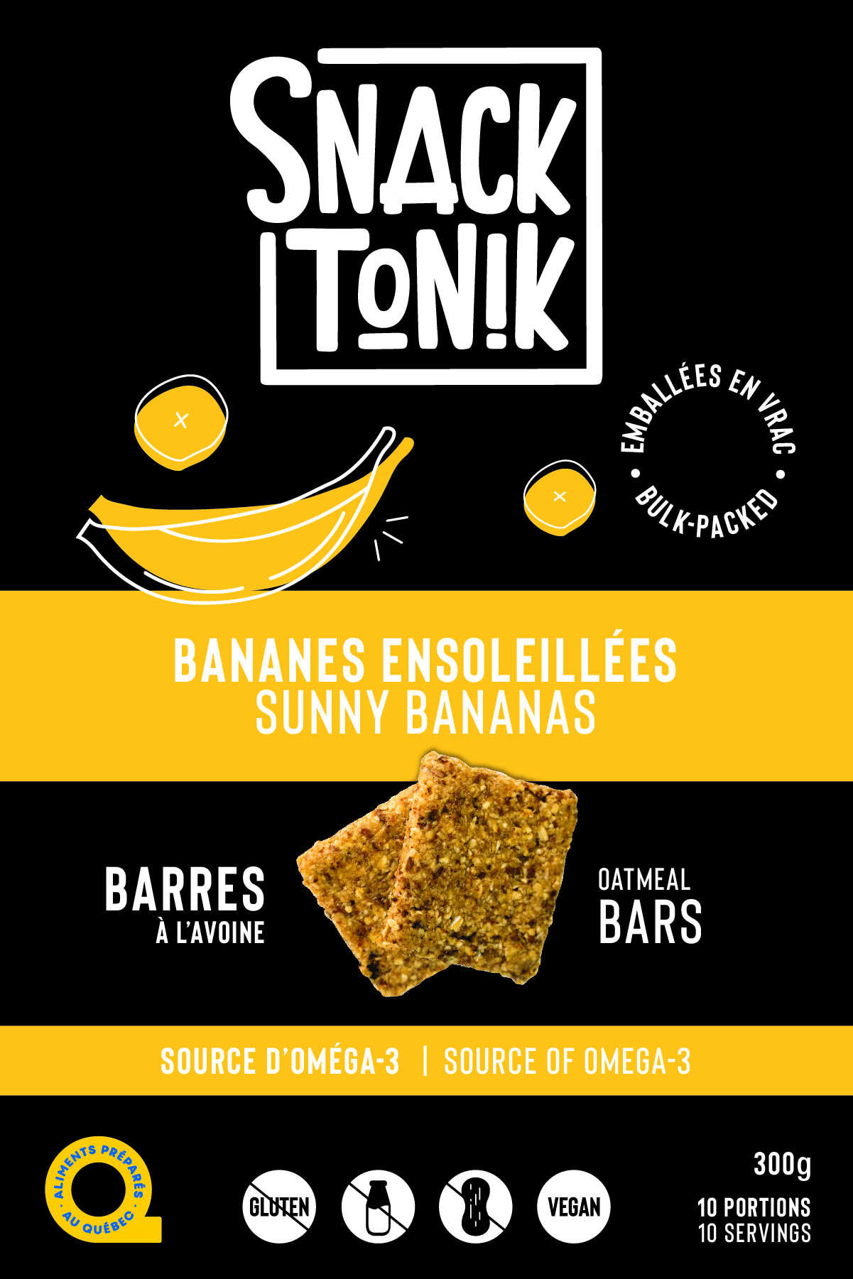 Nos délicieuses barres tendres SnackTonik sont végétaliennes et faites à partir d’ingrédients naturels. Conçues sans noix, gluten ni produits laitiers, elles sont une collation idéale pour les petits et les grands et ont été élaborées avec l’aide d’une nutritionniste.