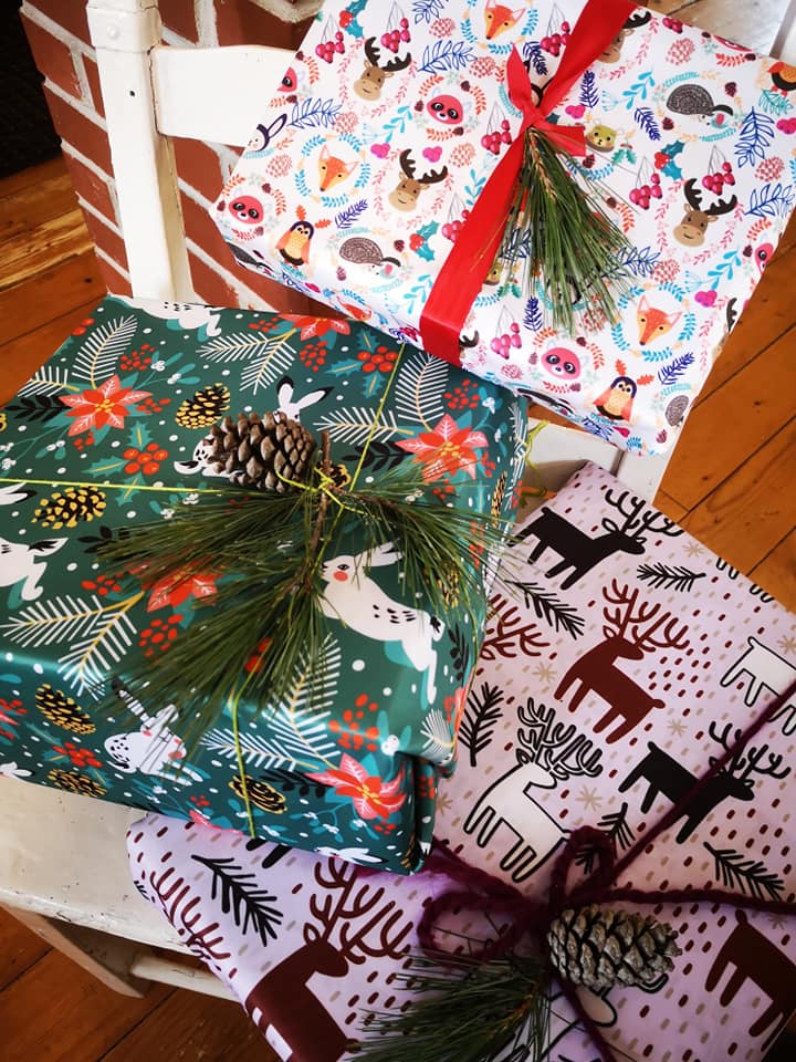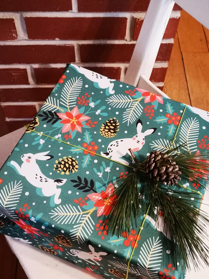 PUL (polyuréthane laminé) pour emballer vos cadeaux. Un joli cadeau écologique pour la personne qui le reçoit et qui l'offrira à son tour! Le tissus laminé peut être facilement fixé avec du ruban adhésif ou simplement attaché avec une ficelle.