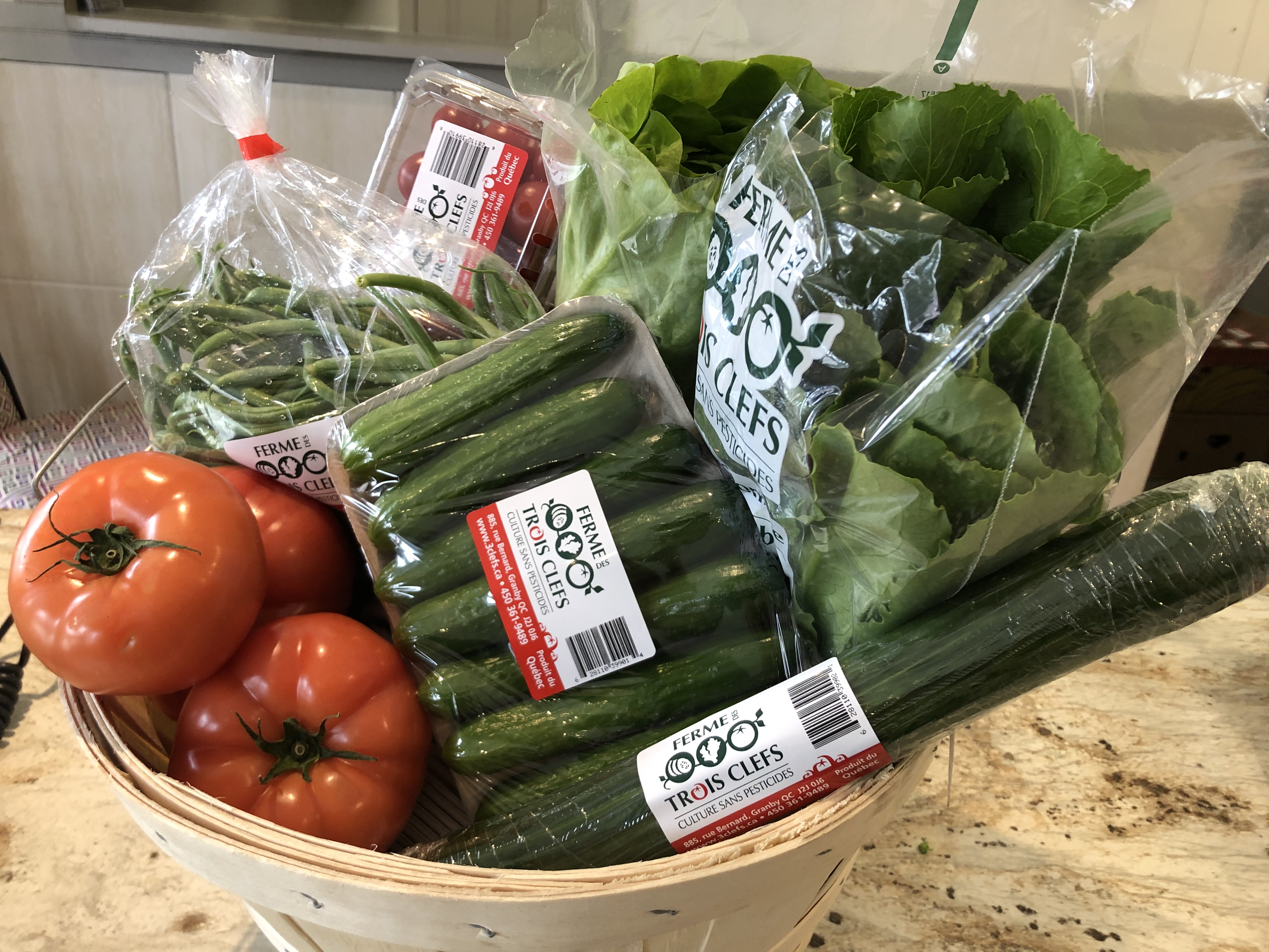 Petit Panier de légumes variés au choix du maraîcheur !1 livre de concombres libanais 1 unité de concombre anglais1 chopine de cerise rouge2 livres de tomate1 livre de tomate italienne2 laitue vivante1...