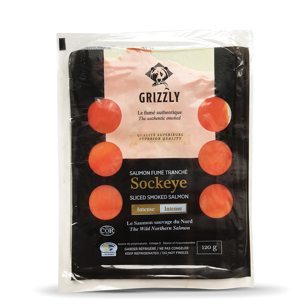 Avec une habileté sans pareille, le grand ours grizzly, roi des étendues nordiques, n'a pas son égal pour pêcher le saumon. Aux aguets près des rapides, il reconnaît l'éclat argenté de sa proie ainsi que la fraîcheur et le goût exceptionnels du saumon sauvage. Inspirés par cet animal emblématique, nous avons donné le nom de Grizzly à nos produits d'exceptions.