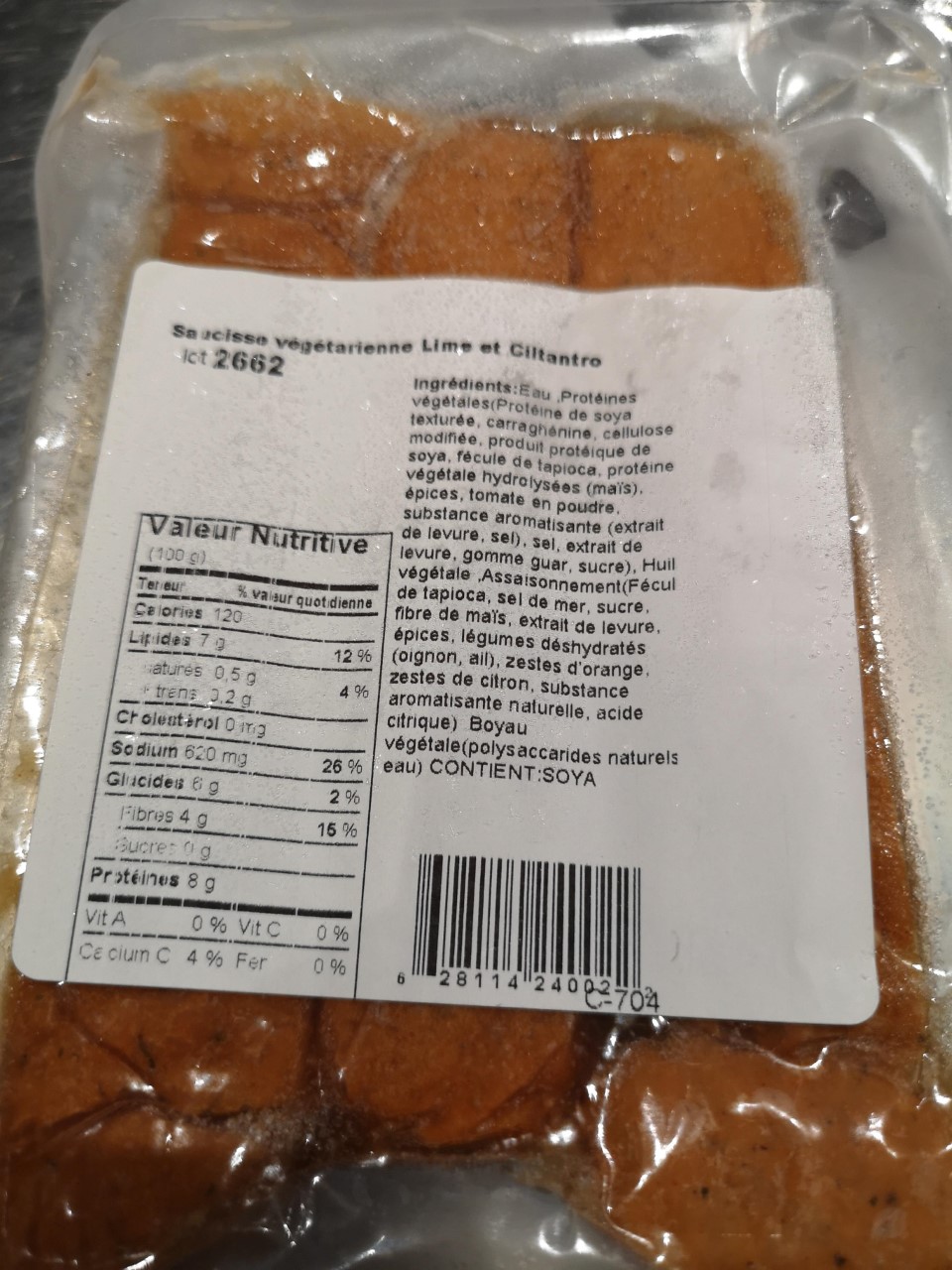 PAQUET DE 3 SAUCISSES LIME CILTANTRO VÉGÉ...