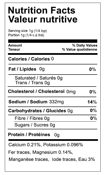 Remplace vos sels de mer et sels conventionnels  . Donne un goût distinct à vos plats .