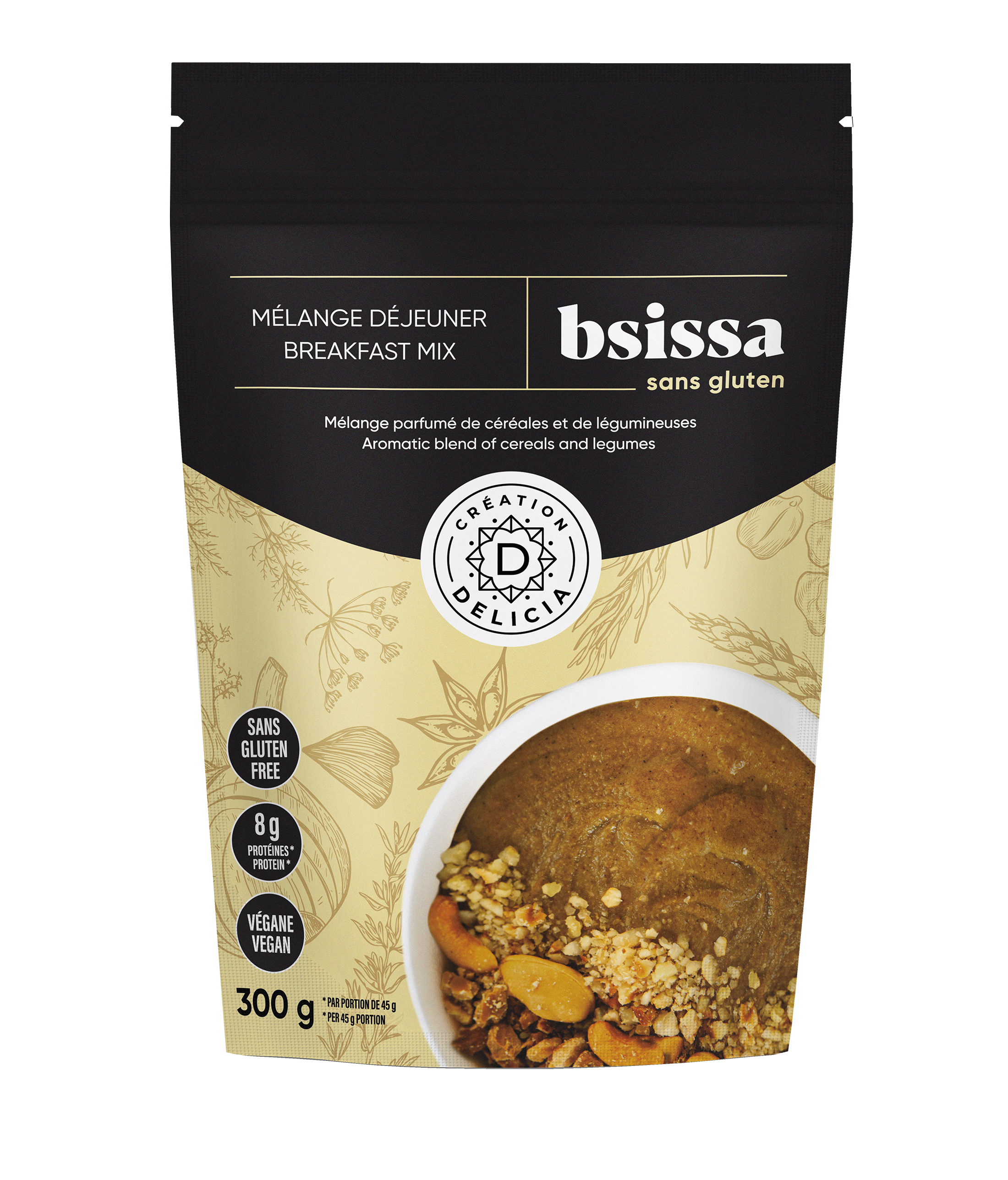 3c.à s. de Bsissa, 2 c.à soupe d'huile d'olive, 4 c à s.de lait, lait végétal ou eau. Pour sucrer, ajouter du miel, du sirop d'érable, du sucre de dattes, des raisins ou des figues sécs. mélanger jusqu'à obtention d'une texture crémeuse garnir aux choix avec des noix .