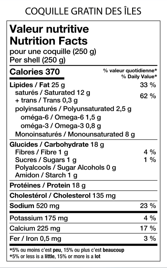Savoureuse coquille, qui se démarque par sa sauce rosée et par la quantité de fruits de mer du québec, produits d'ici.