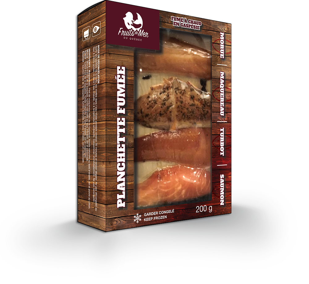 • Maquereau: Filet de maquereau frais de la Gaspésie fumé naturellement au bois d'érable, sel et poivre au citron.
