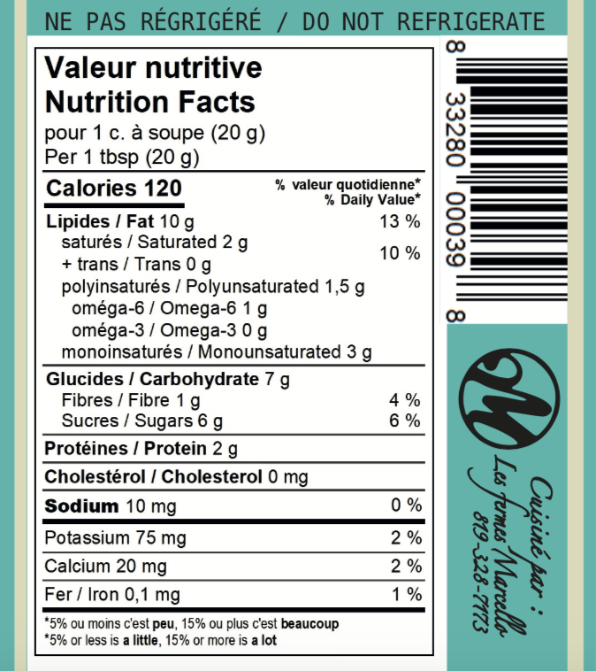 * Ce produit a été cuisiné avec des aliments qui auraient pu être en contact avec des noix, des arachides, du soya, du blé ou des produits laitiers.