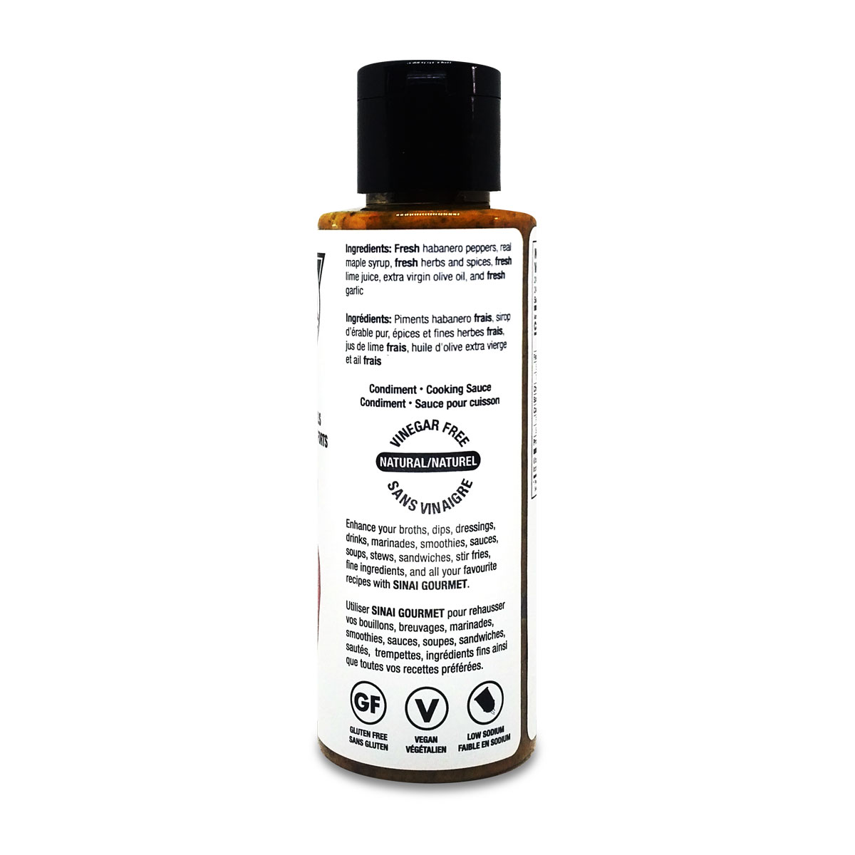 Mélange de poivrons habanero frais, sirop d'érable, des herbes fraîches et d' épices, jus de lime frais, huile d'olive extra vierge, et l' ail frais.