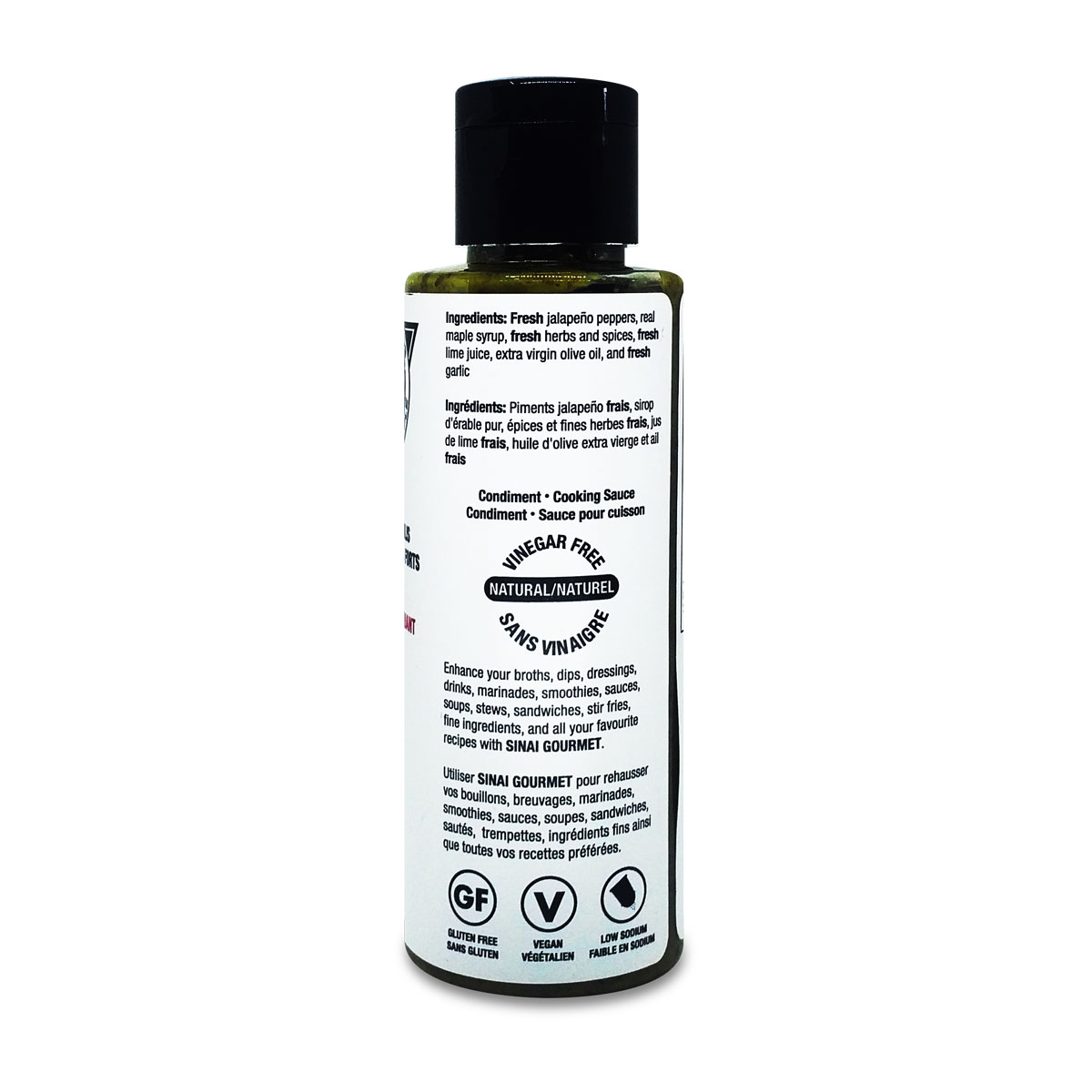 Mélange de piments jalapeños frais, sirop d'érable, des herbes fraîches et d' épices, jus de lime frais, huile d'olive extra vierge, et l' ail frais.
