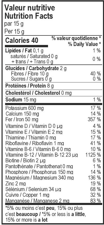 Algues pures à 100%: ce produit contient des algues et seulement des algues.